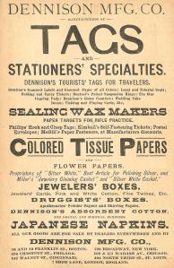 Dennison was not the only company that offered inexpensive and temporary thrills. The George B. Evans company has been mentioned. You might also want to look at the holiday products offered in the 1911 Christmas catalogue of MacCalla & Company of Philadelphia, a company better known for scholarly and religious printing: https://archive.org/details/christmastagssea00macc