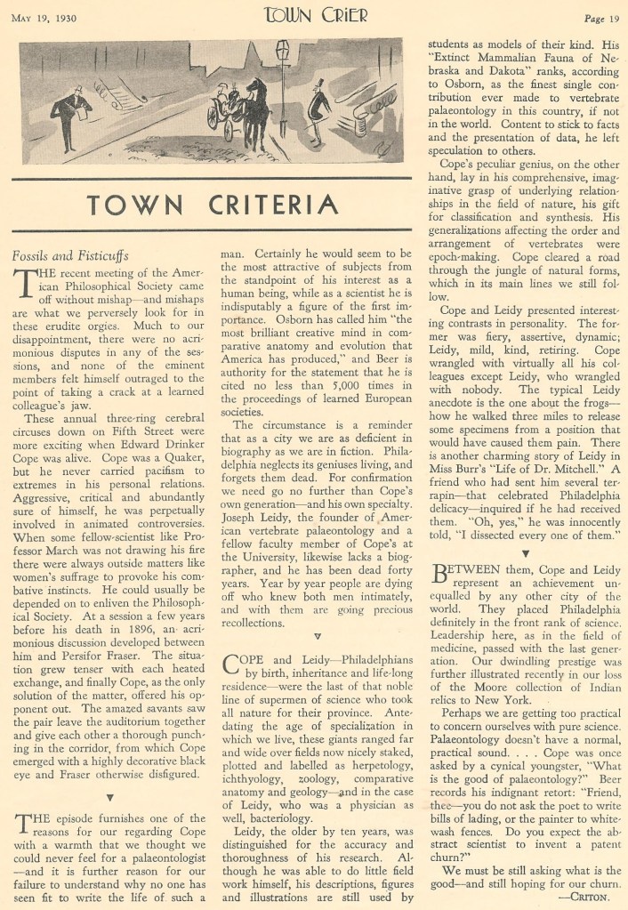 What might Philly have looked like? There is a ready answer in Town Crier of Philadelphia, “Philadelphia’s smart, new, humorous weekly,” as it was called in the issue of May 19, 1930. Here are some pages from that issue. Is the style familiar?