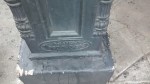 The Markland lamps and their competitors went the way of gas lamps here and elsewhere, but in the garden of the Peale Center for Baltimore History and Architecture, and at the Baltimore Streetcar Museum, you can see a few “street names upon the public lamps.” That is not to say that they are Markland’s name strips; the street names are black on a white opaque background, the style seen in images of working street lamps in Baltimore. In Boston, a collector added, or restored, sign plates to a lamp from the intersection of Salem and Hull.