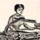 Apparently the napkins were done up with beautiful and colorful flower designs, inspiring “bachelor maidens” and other women to make them into sachets in all their favorite colors and scents. If you sew, the figure is self-explanatory. Fold a napkin in half with the right side inside, and stitch the outer edges together, leaving an opening of a few inches in the middle. Turn the napkin right side out, smooth it, and insert cotton sprinkled with a favorite scent into the “saddlebags” on either end. Tie a ribbon bow in the center, perhaps after closing the opening with exterior stitching. This must be one of the easiest projects in the book, and it is inexpensive and useful, if not durable.