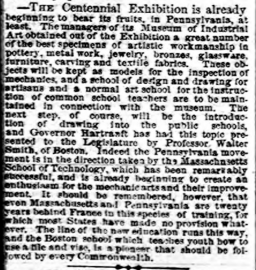 Centennial, Governor Hartranft, Pennsylvania education, art education, Philadelphia, Museum of Industrial Art, Massachusetts School of Techology