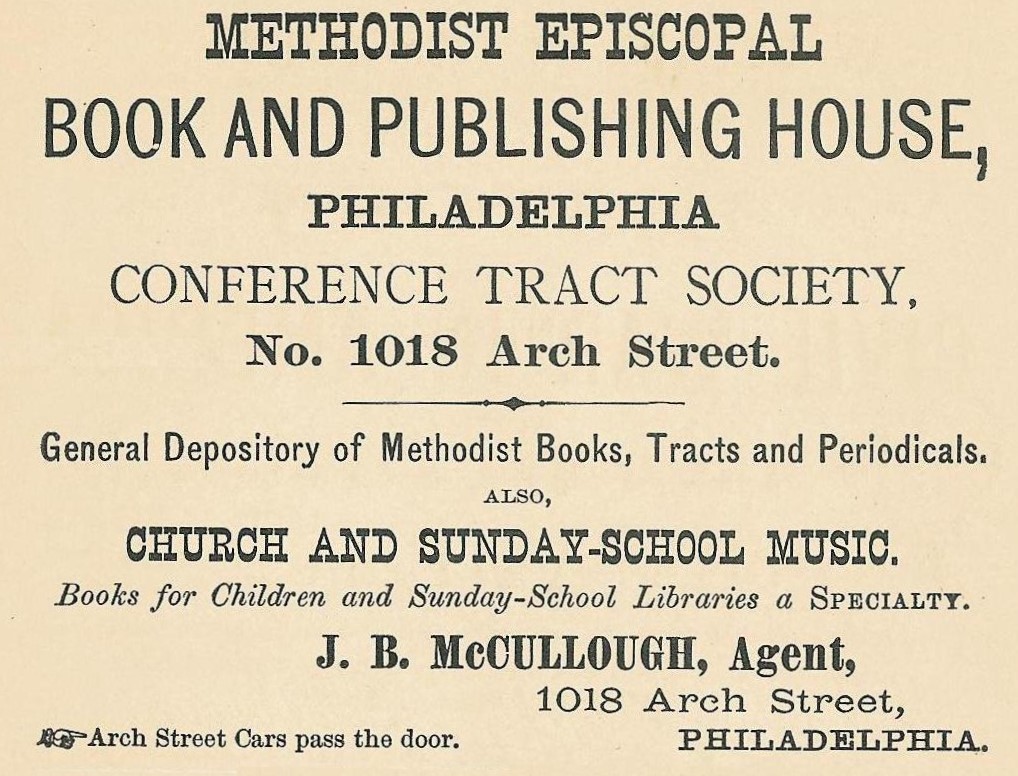 Philadelphia advertisement for the Methodist Episcopal Publishing House,1018 Arch,1876 Sunday School tracts