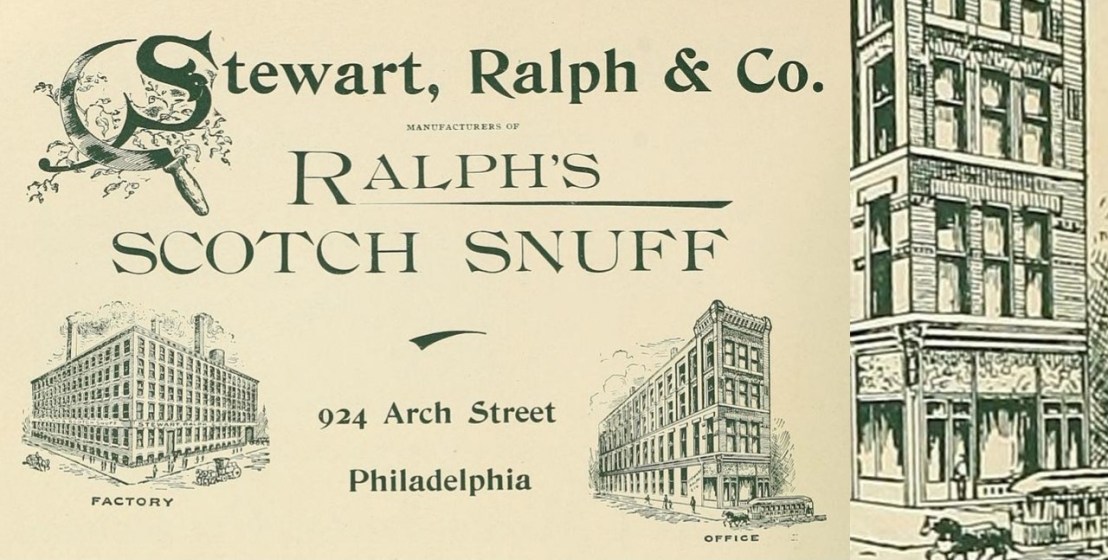 Thank you! Who knew? Not I. Wonder how many people are still using snuff, and how many are from Philadelphia, as that young man seems to be. The last person I saw taking snuff was Mr. Bumble in a production of OLIVER TWIST. If he had applied it to his teeth or gums, imagine the reaction! Wonder whether that reviewer knows about the fine surviving building? Perhaps he would not care to know about it, given his reaction to the snuff.