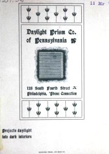 Below is the cover of a fascinating Daylight Prism Company brochure, which is full of photographs of installations in Philadelphia. You can enjoy it on the Internet Archive. To the right is one of the testimonials in the brochure.