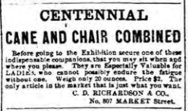 Philadelphia advertisement for C. C. Richardson, Centennial Cane and Chair Combined, Market Street, 1876, exhausted ladies