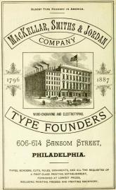 Philadelphia advertisement for MacKellar, Smiths and Jordan, type founders, 606 614 Sansom Street, Philadelphia, from Philadelphia and Its Environs, 1887, engraving, electrotyping, printing