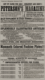 PETERSON’S MAGAZINE, 1881 Philadelphia advertisement, PETERSON’S MAGAZINE, 1881, fashion plates, publishing, mammoth, 306 Chestnut