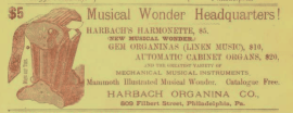 Philadelphia advertisement, Harbach Organina Co., 809 Filbert, musical instruments, mammoth, 1882, cabinet organs, harmonette, catalogue, Gem Organina