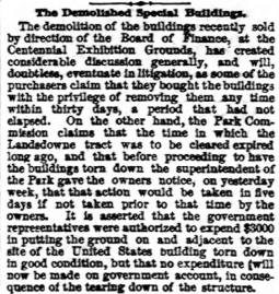 INQUIRER, 12 June 1877 demolitions, Centennial, Board of Finance, Centennial Exhibition Grounds, Fairmount Park Commission