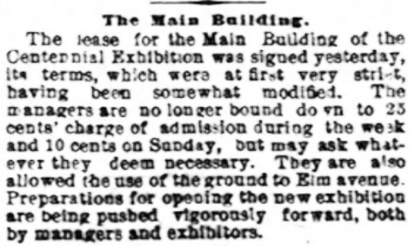INQUIRER, 30 December 1876 Centennial, Main Exhibition Building, Elm Avenue, Permanent International Exhibition Philadelphia
