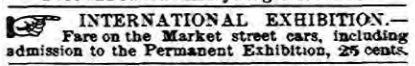 INQUIRER, 8 May 1877 Centennial, Permanent International Exhibition, Market Street cars, Philadelphia transportation