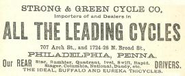 Boyd’s Business Directory, 1890 Philadelphia advertisement for Strong and green, cycles, Arch Street and Broad Streets 1890 Like Loading...
