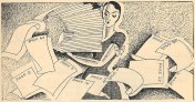 The featured illustration at the start of this page comes from the “real” Philly magazine, Town Crier, for May 19, 1930. Kitty might have chosen dresses like this to make an impression in the Philly office. I hope the caption–“And it turned out to be a scroll!”–conveys more to you than it does to me.