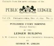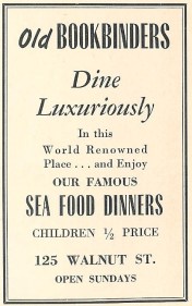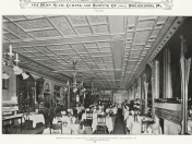 “Dooner’s famous old hotel [23-29 South Tenth Street] for men, ladies admitted only in the dining room, was [a] big name.” Mr. Foyle usually went there by himself, and occasionally quarreled, as a “Londonderry Protestant,” with Irish Catholics. When the hotel closed in 1924, he received some silverware and a fish salver from the place, and a painting of a bull terrier. (This male retreat lacked the usual paintings of nude women, a circumstance he attributed to its popularity with priests.)