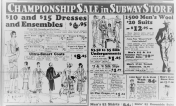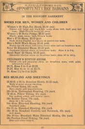 Kitty’s mother threw out a tattered sofa cushion dear to her husband from years of use, and replaced it with a new one from Snellenburg’s. The Snellenburg collars (dated only to the days when a collar cost 29 cents) are a reminder that Kitty was a White Collar Girl. She makes a train journey in a tan dress with white collar and cuffs. To the Main Line coachman, Snellenburg’s, “the Thrifty Store for Thrifty People,” would probably have been even more mysterious than Gimbel’s, which was in the middle of the retail scale, between luxury and thrift.