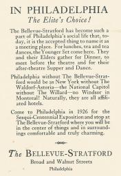 The sections of the book that take place in Chicago and New York, not to mention the ones that take place in the invented town of Manitou, Illinois, are not as full of minute particulars as the Philadelphia sections. Here is a list done up by alphabet: Marian Anderson; the Assembly; Bainbridge Street and South Street, important in the African American community; the Betsy Ross House; the Billy Penn statue on City Hall, “looking towards Frankford”; “grand old” Broad Street Station, lately reduced to “a turn-around for the suburban trains”; the Camden Bridge and Camden Ferry; the Centennial celebration of 1876, at which Kitty’s grandfather bought a “wonderful gilt and glass clock”; the Chestnut Street and Walnut Street shopping areas and the “Chestnut, Walnut, Spruce and Pine” rhyme; Conshohocken, a nearby town whose name is used by Mr. Foyle as a substitute curse word; the Curtis Publishing Company; the El or “L”; Fish-House Punch; Frankford with its asylum for the insane, Carnegie Library, cricket club (Mr. Foyle’s former place of work), high school, historical society, Friends Meeting House, and tanneries; Frankford Creek; Benjamin Franklin (to the Main Line, “still a boy from the wrong side of the tracks”); Franklin Field; Germantown (the home of Kitty’s mother, an Upsal known to her husband as his “little chicken from Wissahickon”), considered “pretty much top shelf” compared with Frankford: “[Y]ou can lick the Boches but you can’t lick Germantown,” in the words of Kitty’s father; the green country town, an expression Wyn Strafford evokes in the park rather than in town, and Kitty attributes to someone important, “[p]robably not John Wanamaker”; long-lost Kelly Street near Tenth and Chestnut; the Liberty Bell; the Mercantile Library; [S.] Weir Mitchell; Neshaminy Falls; the North Philadelphia Station; “the Pennypacker place”; the Philadelphia Contributionship for the Insurance of Houses from Loss by Fire, which Kitty considers a typical name for an old Philadelphia institution; the Racquet Club; Rittenhouse Square; the Sesqui celebration of 1926, a “terrible flop” in the eyes of Kitty’s father (and others); the Shooter’s Parade; the State House (known to outsiders as Independence Hall); [Leopold] Stokowski; Bayard Taylor; Thirtieth Street Station, the usurper of the prerogatives of Broad Street Station; Torresdale and the Torresdale Filter Plant; and the Union League. The movie shows City Hall from the air and the Public Ledger for sale in New York, and mentions Griscom Street, the Bellevue-Stratford, and of course the everlasting Assembly. That’s about all.