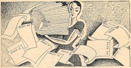 sketch from WANAMAKER DIARY, Wanamaker’s department store, Philadelphia, New York, 1932, office worker, white collar girl