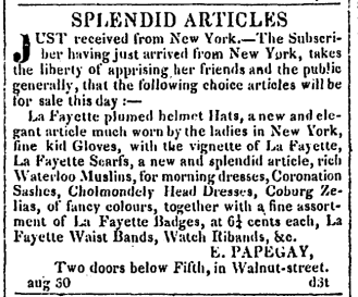 In August 1824, Lafayette was beginning his sensational tour of the U.S. The Da Pontes had been settled in New York for several years. Did Papegay visit them during her buying trip?