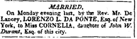 “Lorenzo L. Da Ponte” “Christ Church” “John W. Durant” “Cornelia Durant Da Ponte:” Philadelphia “Italian Americans” “Lorenzo Da Ponte” wedding 1826