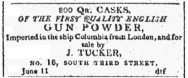 AURORA GENERAL ADVERTISER, 14 June 1805 Columbia Philadelphia gunpowder 1805 “J. Tucker” “16 South Third” Like Loading...