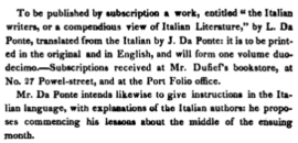 “The Port Folio” Portfolio Philadelphia 1818 “Lorenzo Da Ponte” “Powell Street” “Powel Street” “Italian literature” “Joseph Da Ponte” “J. Da Ponte” “Delancey Street” “N. G. Dufief” Dufief “Universal Book Store”