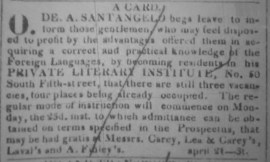 Santangelo Philadelphia 1827 “Orazio de Attellis” “marquis of Sant”Angelo” “Private Literary Institute” “foreign languages” school “Lea & Carey” “Italian Americans” “60 South Fifth St”