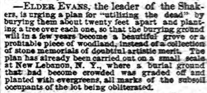 Philadelphia Inquirer, 11 April 1877 Shakers, burial customs, eco-burial, Philadelphia Inquirer, 1877, New Lebanon NY Like Loading...