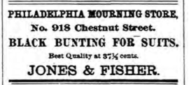 Inquirer, 7 June 1877 Philadelphia advertisement for Jones and Fisher Philadelphia Mourning Store, 918 Chestnut, 1877, bunting Like Loading...