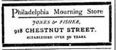 The American, 15 April 1882 Philadelphia advertisement for Jones and Fisher, Philadelphia Mourning Store, Chestnut Street 1882 Like Loading...