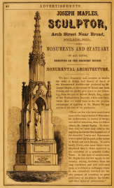 Philadelphia advertisement for Joseph Maples, sculptor of monuments and statuary, Arch Street near Broad 1860 tombs mourning
