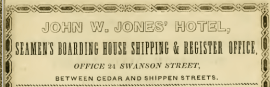 McElroy’s Philadelphia Directory, for 1851. Shippen Street is now known as Bainbridge. Philadelphia advertisement for John W. Jones’ Hotel, Swanson Street 1851 Like Loading...