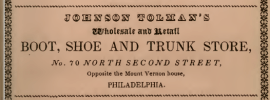 McElroy’s Philadelphia Directory for 1844 Philadelphia advertisement for Johnson Tolman’s boot shoe and trunk store, North Second Street 1844 Like Loading...