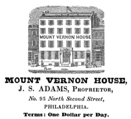 O’Brien’s Philadelphia Wholesale Business Directory . . . for the Year 1844 Philadelphia advertisement for Mount Vernon House hotel, North Second Street 1844 Like Loading...