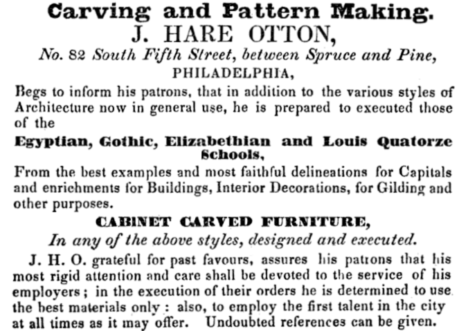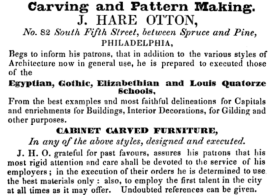 O’Brien’s Philadelphia Wholesale Business Directory . . . for the Year 1844 Philadelphia advertisement for J. Hare Otton, carving and pattern making, South Fifth Street 1844 Like Loading...