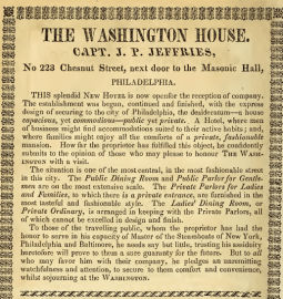A. M’Elroy’s Philadelphia Directory, for 1839 Philadelphia advertisement for the Washington House of Jeffries, Chestnut Street 1839 Like Loading...