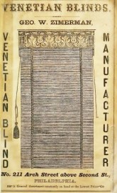 McElroy’s Philadelphia Directory, for 1857 Philadelphia advertisement for George W. Zimerman, venetian blinds, on Arch Street 1857 Like Loading...