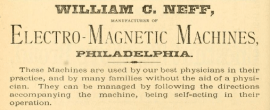 American Enterprise: Burley’s United States Centennial Gazetteer and Guide, 1876 advertisement for William C. Neff, Electro-Magnetic Machines, Philadelphia medicine Like Loading...
