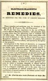 Philadelphia advertisement for Dr. Parvin, electrico-magnetic, electro-galvanic remedies for chronic disease, Pine Street, 1840