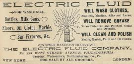 Philadelphia advertisement for the Electric Fluid Company, for washing clothes, cleaning and polishing, Girard Avenue 1890