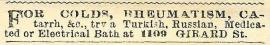Philadelphia advertisement for Russian bath, medicated bath, electrical bath, for rheumatism or catarrh, Girard Street 1871
