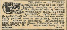 Advertisement for Seeley’s Hard-Rubber Trusses, 1347 Chestnut, Philadelphia and 717 Broadway, New York, hernias sea-bathing, 19 July 1876