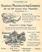 Philadelphia advertisement for Dennison Mfg. Co, 1007-09 Chestnut, 1901, crepe paper, tags, labels, tickets, crafts, stationery