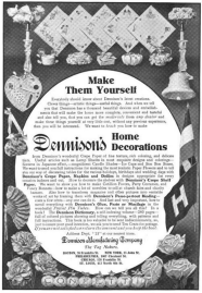 advertisement for Dennison Mfg. Co., 1007 Chestnut, Philadelphia, 1906, home decorations, crafts, napkins, doilies, glue, binding, confetti, crepe paper