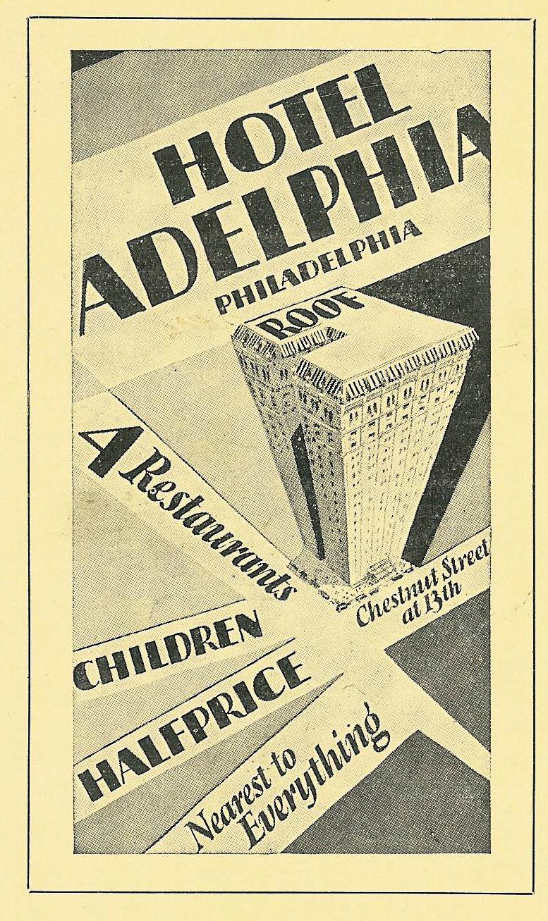 Philadelphia advertisement for the Hotel Adelphia, Chestnut and Thirteenth 1929 1920s roof