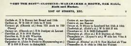 Buttons (McElroy’s Philadelphia City Directory, 1865) Philadelphia advertisement for Wanamaker and Brown, Oak Hall, clothing store, Market and Sixth 1865 Like Loading...