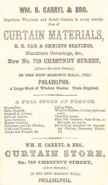 Philadelphia advertisement for Wm. H. Carryl and Bro., household goods, Chestnut in Masonic Hall, Civil War, Mary Lincoln