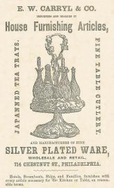 Philadephia advertisement for E. W. Carryl, house furnishings, silverplate, cutlery, japanned trays, Chestnut Street 1860