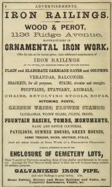 Philadelphia advertisement for Wood and Perot, ornamental iron work railings, verandahs, military cemetary work, balconies, statues 1864 Civil War