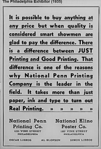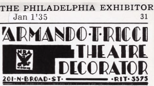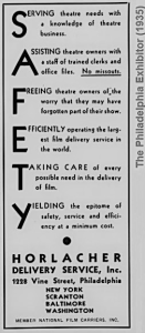 The lively, close-knit community of theater owners, bookers, and suppliers, like the punchy, vivid advertising that brought crowds to the movie palaces once found in every town and neighborhood, comes to life in the 1934–36 issues of Emanuel’s trade magazine, The Philadelphia Exhibitor, available from the virtual exhibitors of the Internet Archive. In them Hexter appears as an industry veteran, a wit, and a stalwart of the Independent Exhibitors Protective Association. He must have been a familiar figure on Vine Street between North Twelfth and North Juniper, the spine of Film Row.