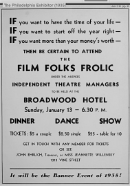 Philadelphia advertisement for the Broadwood Hotel, N. Broad and Wood SW, 1935, “Film Folks Frolic”, theaters, nightlife
